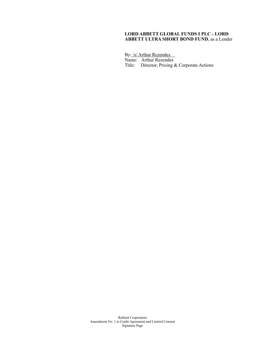 Ralliant Corporation Amendment No. 1 to Credit Agreement and Limited Consent Signature Page LORD ABBETT GLOBAL FUNDS I PLC - LORD ABBETT ULTRA SHORT BOND FUND, as a Lender By: /s/ Arthur Rezendes Name: Arthur Rezendes Title: Director, Pricing & Corporate Actions